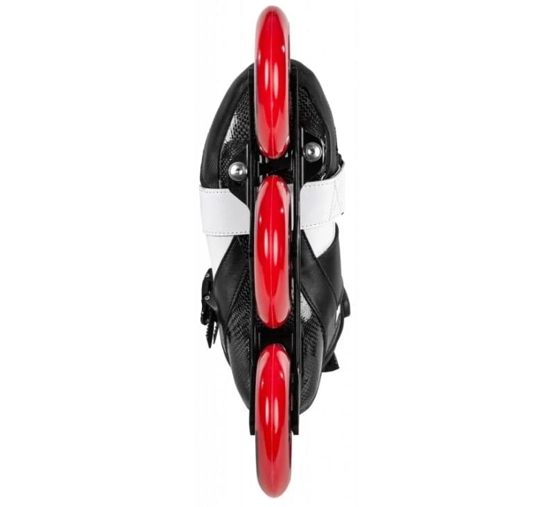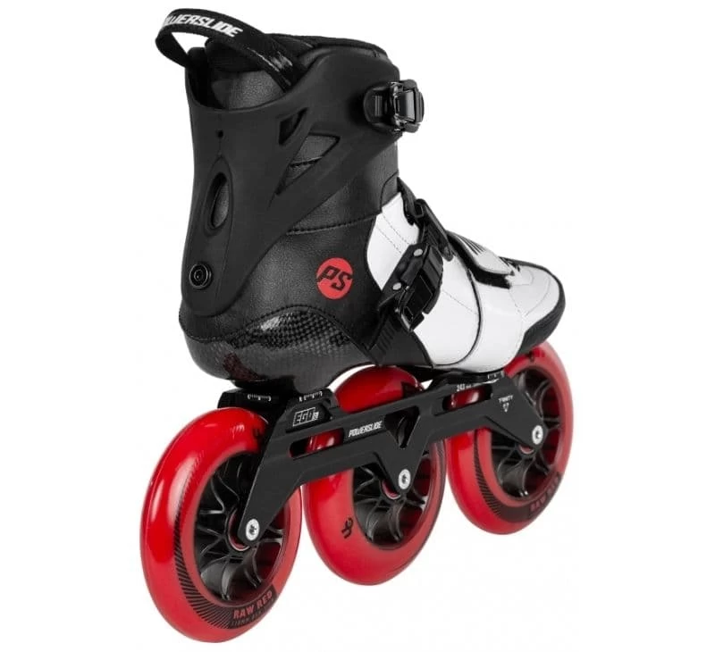 The Powerslide Arise SL has been developed with focus on speedslalom (SL) while offering a super lightweight (SL) skate. This mid cut skate gives you the feelings of top carbon racing skates with the lateral support you look for when you need to race through the cones. The Arise is more than just a skate for speedslom and could be also used for urban cruising or for marathon races if equipped with an appropriate racing frame. The shell of the boot is made of carbon and offers a tight but comfortable fit. The lightweight cuff will give you extra lateral support, but can also be taken off if preferred. You could do the same with the front velcro strap which has been added to optimize your power transfer. This sleek skate scores high with its attractive design and the TRINITY 3-point mounting system which offers not just a low stand on the ground, but also maximum power transfer, balance, control, and reactivity. The short 243mm Ego SL frame is very agile and perfectly suited for speedslalom. The Ultra High Rebound (UHR) compound of Undercover wheels paired with Wicked ABEC 9 freespin bearings provide great rolling performance and grip. Get ready to beat your record or just discover the effortless gliding feeling.