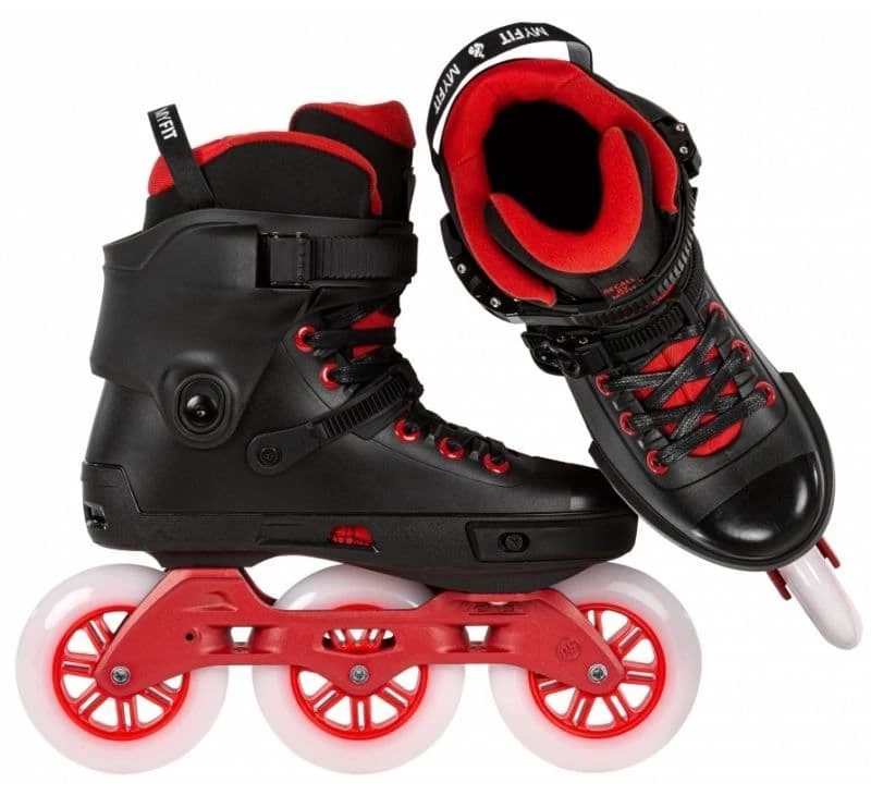 It’s hard not to be noticed when you’re rolling on the NEXT Black Red 110 3-wheel urban skate from POWERSLIDE. Fast, supportive, feature-packed, and with a striking black/red colorway, you’re going to love exploring the city. This versatile 3-wheel urban skate has a durable hardboot paired with a supportive cuff that can be customized to match your personal skating style. You can easily raise or lower the cuff to change the level of lateral flex and support, and you can trim the cuff to adjust the forward flex to augment performance. Skate fast, turn quickly, jump higher, land big gaps, and do it all in comfort thanks to the MYFIT Recall Dual fit liner. The premium liner with soft memory foam padding delivers a glove-like fit and guarantees a comfortable skating experience. This versatile 3-wheel inline skate is designed around the famous TRINITY 3-point mounting system that provides a range of benefits, including a low center of gravity, excellent stability, and superb control. With the TRINITY system, you can adjust the position of the frame to further improve performance. The NEXT Black Red 110 inline skate comes with a light and stable Elite aluminum frame with a distinct red color that can’t be missed. Fast, stable, stylish, and responsive, the Elite frame is the ideal urban freeride frame. Riding on speedy 110mm POWERSLIDE Spinner wheels and smooth WICKED ABEC 9 bearings is an ideal mix of speed, agility and striking style in a high-performance urban freeride skate.