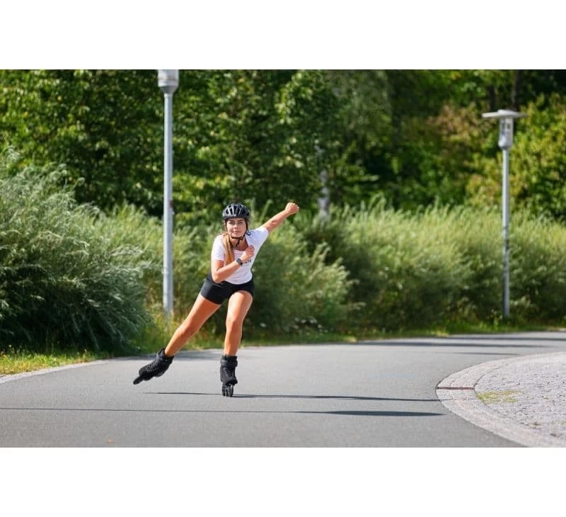 The Powerslide Pheme skate is the perfect combination of fashion and function. Designed purely for women, with a perfectly shaped women’s last it is the pinnacle of comfortable skating. Constructed as a shoe with a shoe look but using a technical glass fiber reinforced strong and stiff outer shell and combined with the TRINITY mounting system it provides an amazing stable platform that improves power transfer, reduces vibrations and creates a super low center of gravity for better balance. The new upper uses high class PU nubuck and nanoleather ensuring a snug and supportive fit that also stands out from the crowd. Powerslides’ Elite casted aluminum 3x100mm 231mm frame is light weight and stiff. The super comfortable inner shoe is made by triple density foams, an additional heel lock and has a Recall memory foam fit for most comfort ever. This skate is super agile and fast rolling with its 3x100mm Powerslide wheels and Wicked ABEC 7 bearings. It includes the Powerslide HABS braking system for additional safety. Pheme: where fashion meets function.
