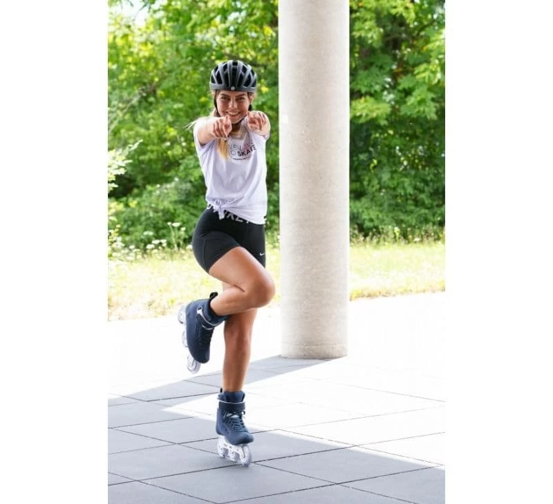 The Powerslide Pheme skate is the perfect combination of fashion and function. Designed purely for women, with a perfectly shaped women’s last it is the pinnacle of comfortable skating. Constructed as a shoe with a shoe look but using a technical glass fiber reinforced strong and stiff outer shell and combined with the TRINITY mounting system it provides an amazing stable platform that improves power transfer, reduces vibrations and creates a super low center of gravity for better balance. The new upper uses high class PU nubuck and nanoleather ensuring a snug and supportive fit that also stands out from the crowd. Powerslides’ Elite casted aluminum 3x100mm 231mm frame is light weight and stiff. The super comfortable inner shoe is made by triple density foams, an additional heel lock and has a Recall memory foam fit for most comfort ever. This skate is super agile and fast rolling with its 3x100mm Powerslide wheels and Wicked ABEC 7 bearings. It includes the Powerslide HABS braking system for additional safety. Pheme: where fashion meets function.