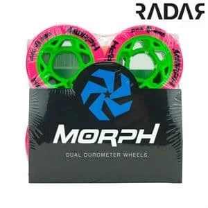 All Morph Wheels are now made by Radar and will be available only under the Radar brand. Morph wheels get a tasteful graphic update and improved packaging. Morph wheels are still made in the USA using the finest urethane available. Morph dual durometer wheels combine two high performance wheels into one with our signature double pour urethane.