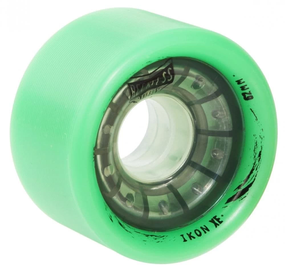 Reckless Ikon XE wheels are 38mm wide to give skaters a happy medium between narrow agility wheels and wider wheels for extra stability and gives the best of both. On the Ikon XE wheels Reckless have given the wheels a ‘lip’ to add more stability and grip to the revolutionary mid-width wheel that is the Ikon XE.