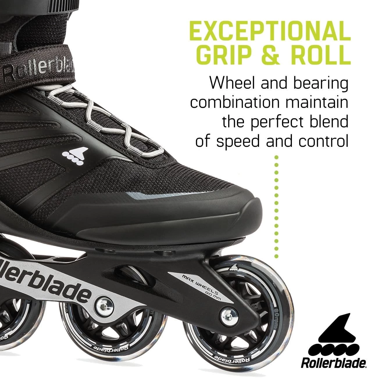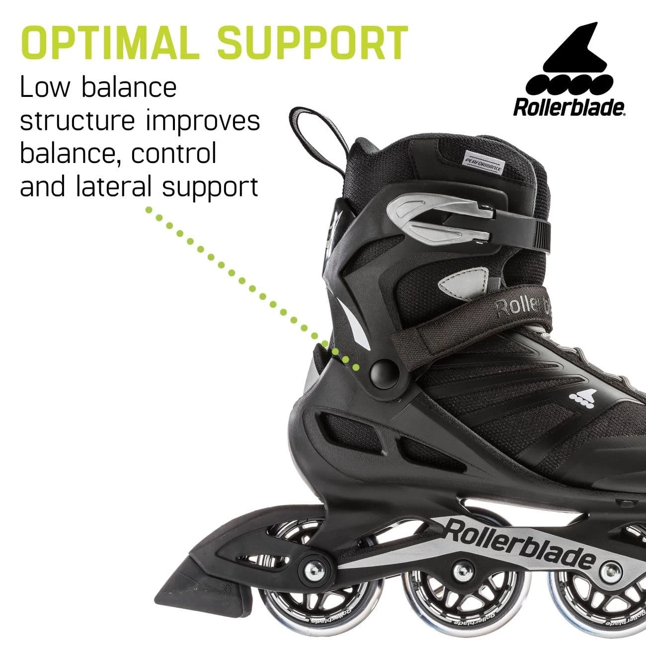 • ROLLERBLADE PERFORMANCE WHEELS – 80mm/82A wheels and SG5 bearings for better wear and moderate speed