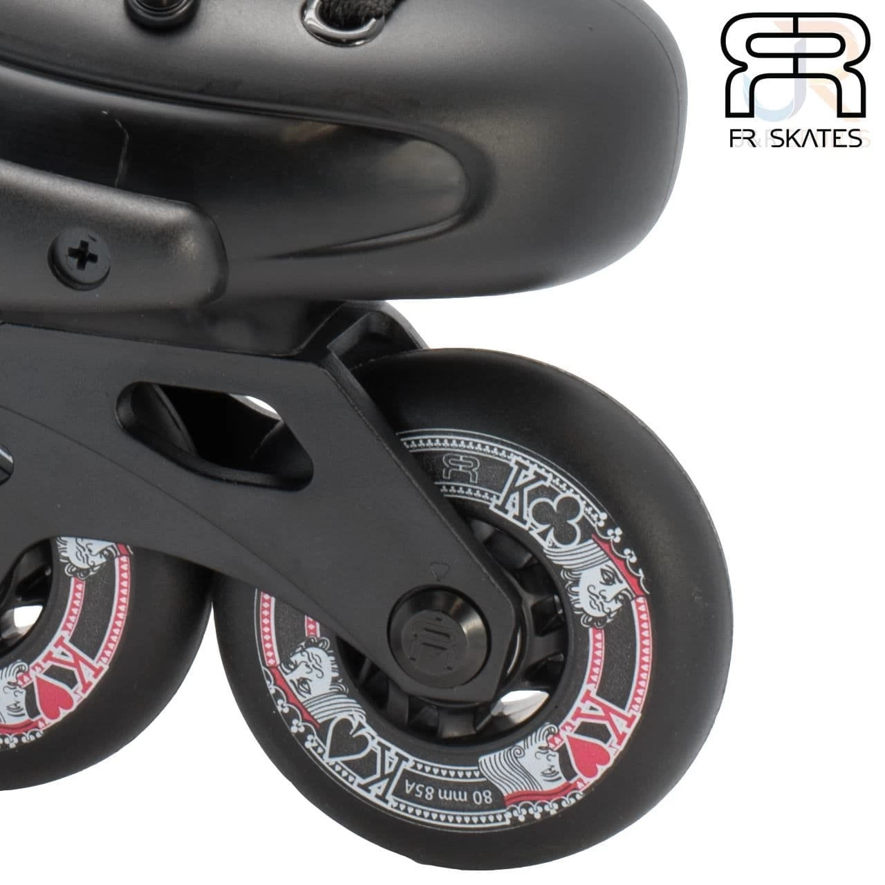 To get the best energy transfer possible from your foot to the ground, FR have added two, seven hole, metal plates to the bottom of their skates, allowing you to adjust the setup of your 243mm frames. Thanks to the integrated plates, you will gain in stability and precision. The FR 3 80 is a great skate to improve your skills in all skating styles.